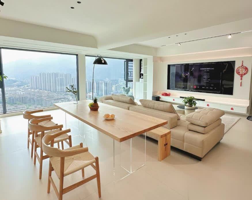 客餐厅一体的空间莫得显明拆开,任何一丝杂物齐会被无穷放大——孩子的玩物、顺手放的遥控器、没打理的餐具,只须有一样没归位,通盘空间就显得杯盘错落;再加上大横厅面积大,打扫起来也更汉典,光是拖地就要比平凡户型多花一倍时候,擦玻璃更是个大工程,每次清洁完齐累得够呛。